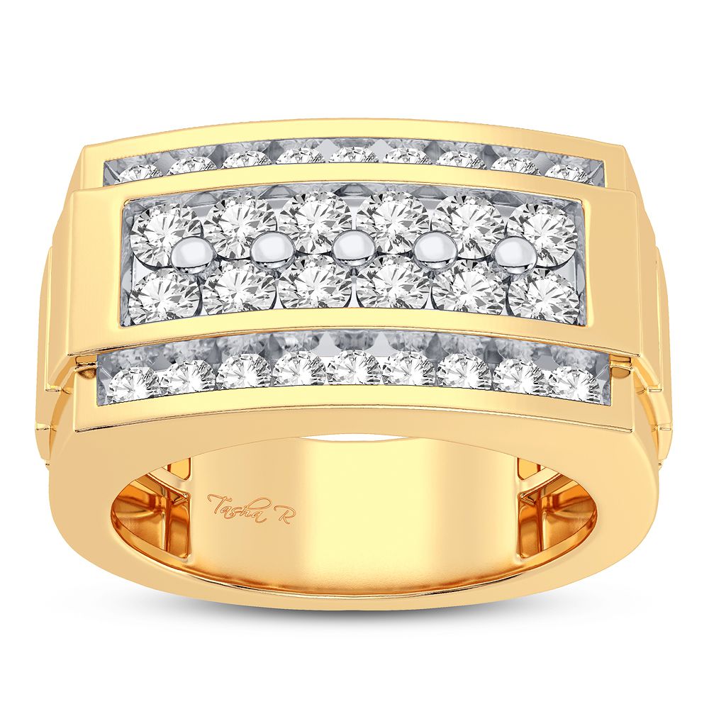 14K Yellow Gold 2CT Lab Diamond Mens Luxury Statement Ring